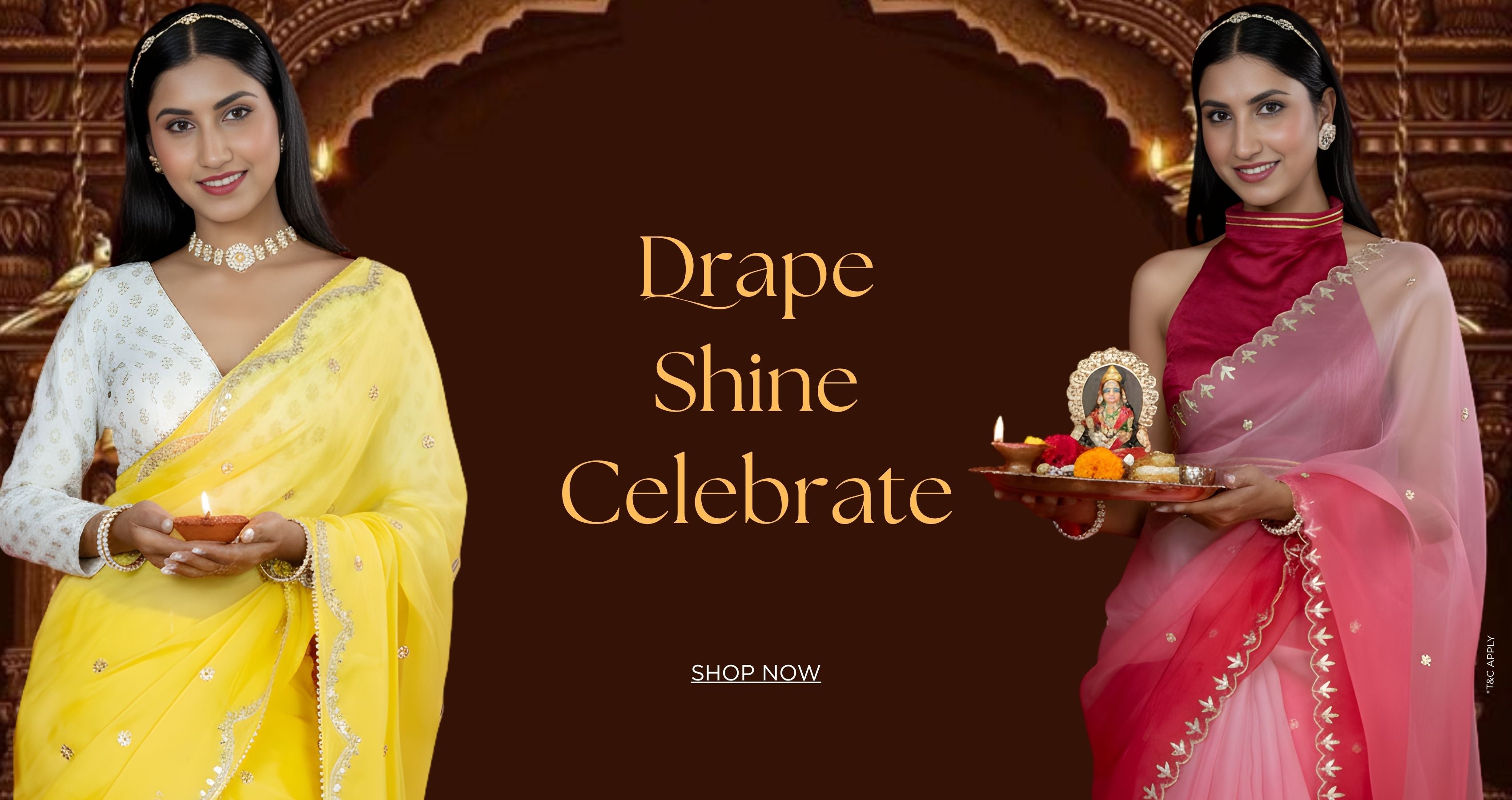 The designs beautifully blend classic motifs with contemporary flair, making them versatile for Karwa Chauth rituals, Diwali gatherings, wedding celebrations, or evening soirées. Whether it’s the resplendent silk drape or the lightweight organza, every saree tells a story of grace, joy, and timeless elegance.