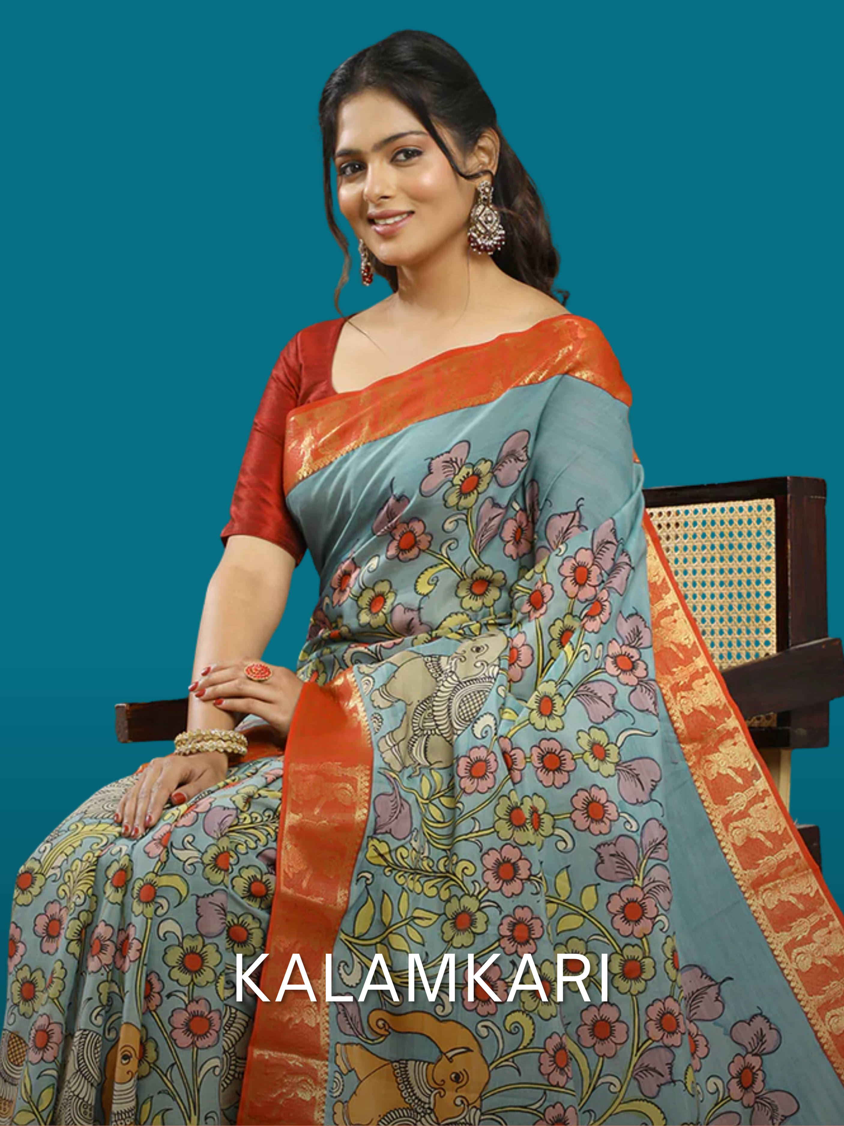 Crafted on luxurious Tussar or Silk, these sarees are ideal for those who seek to infuse their wardrobe with meaning. They beautifully blend heritage, sustainability, and expressive beauty. A Kalamkari saree is not merely an item of clothing; it is a story to be lived in and told, offering a unique blend of everyday grace and artistic elegance. When you wear a Kalamkari saree, you are draped in a piece of history, an exquisite work of art that honors both the artisan's skill and the rich tapestry of Indian tradition.